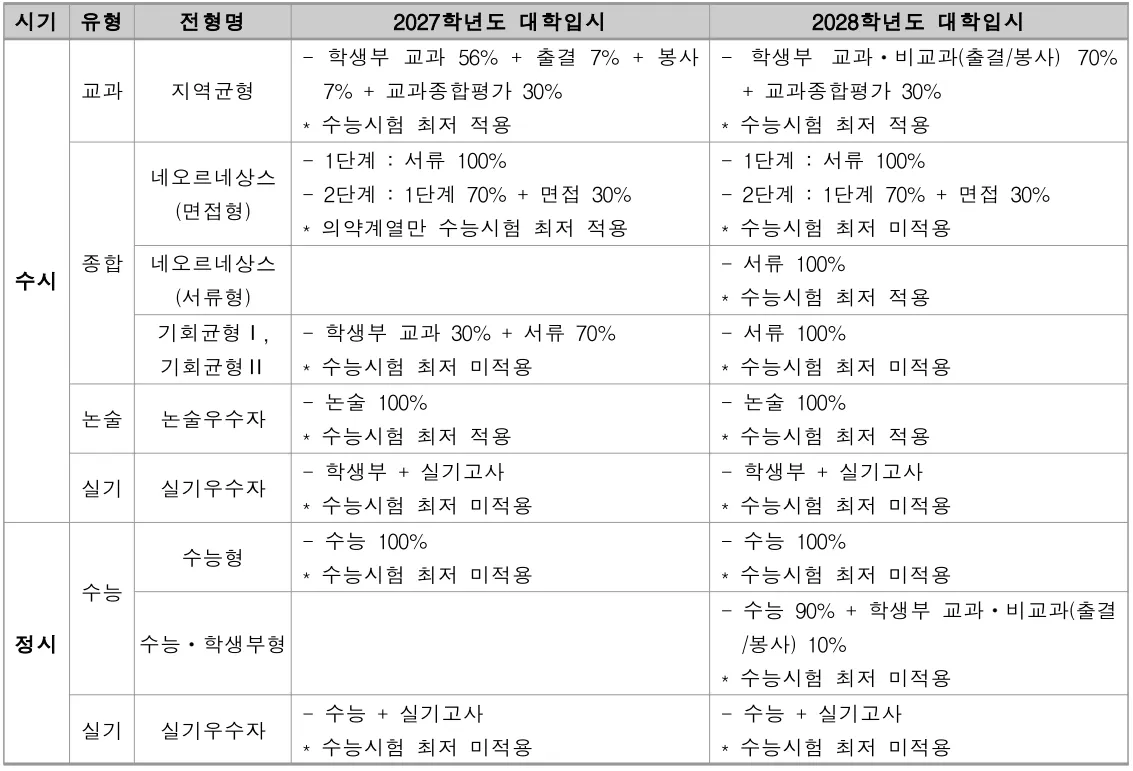 수시 모집 학생부종합 전형에 서류형 전형, 정시 모집 수능 전형에 수능ㆍ학생부형 전형 신설