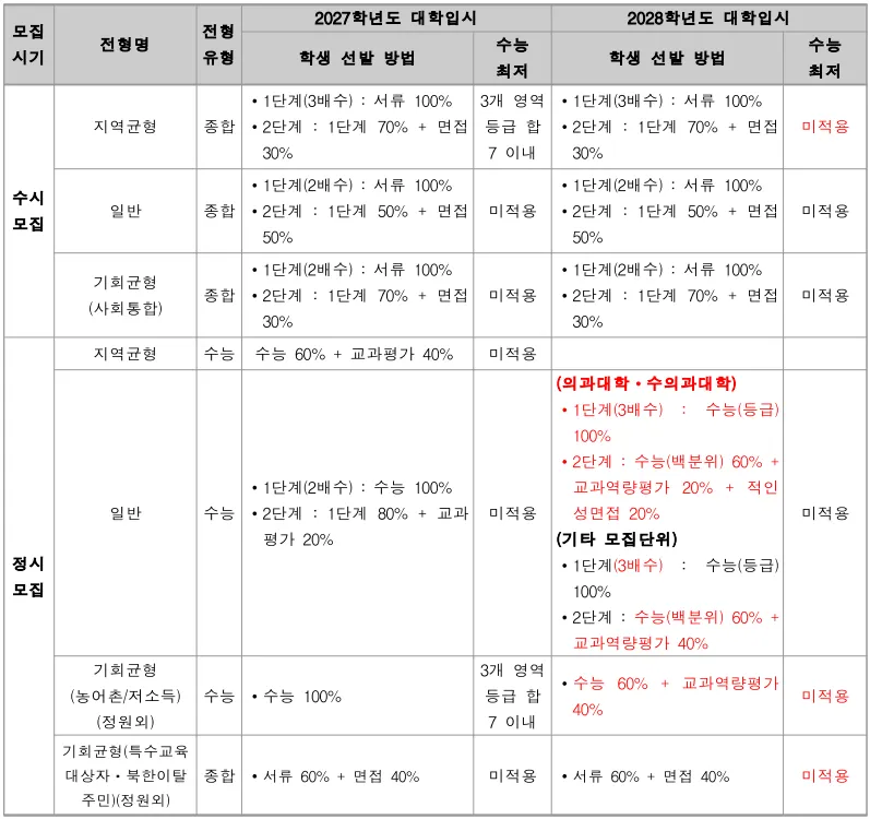 주) 2028학년도 대학입시에서 빨간색으로 작성한 부분이 변경된 내용임.