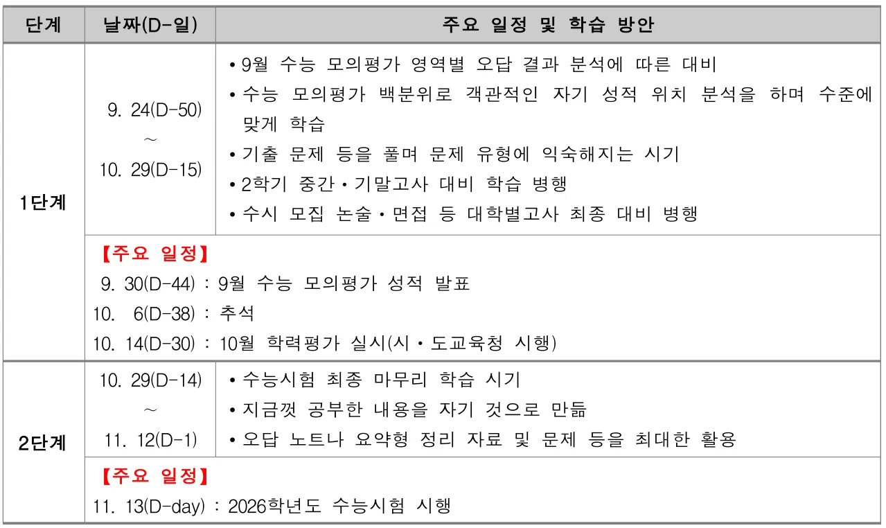 ◆ 2026학년도 수능시험 D-50일 마무리 2단계 학습 캘린더